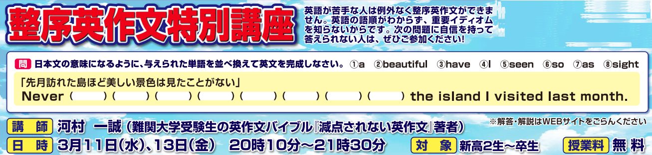 毎度「おもしろすぎる東大英語読解」をお読みいただき、ありがとうございます。 塾や世間では、私は英作文指導のエキスパートということになっておりますので、東大英語読解を一度お休みして、過去30年の入試問題から、 […]